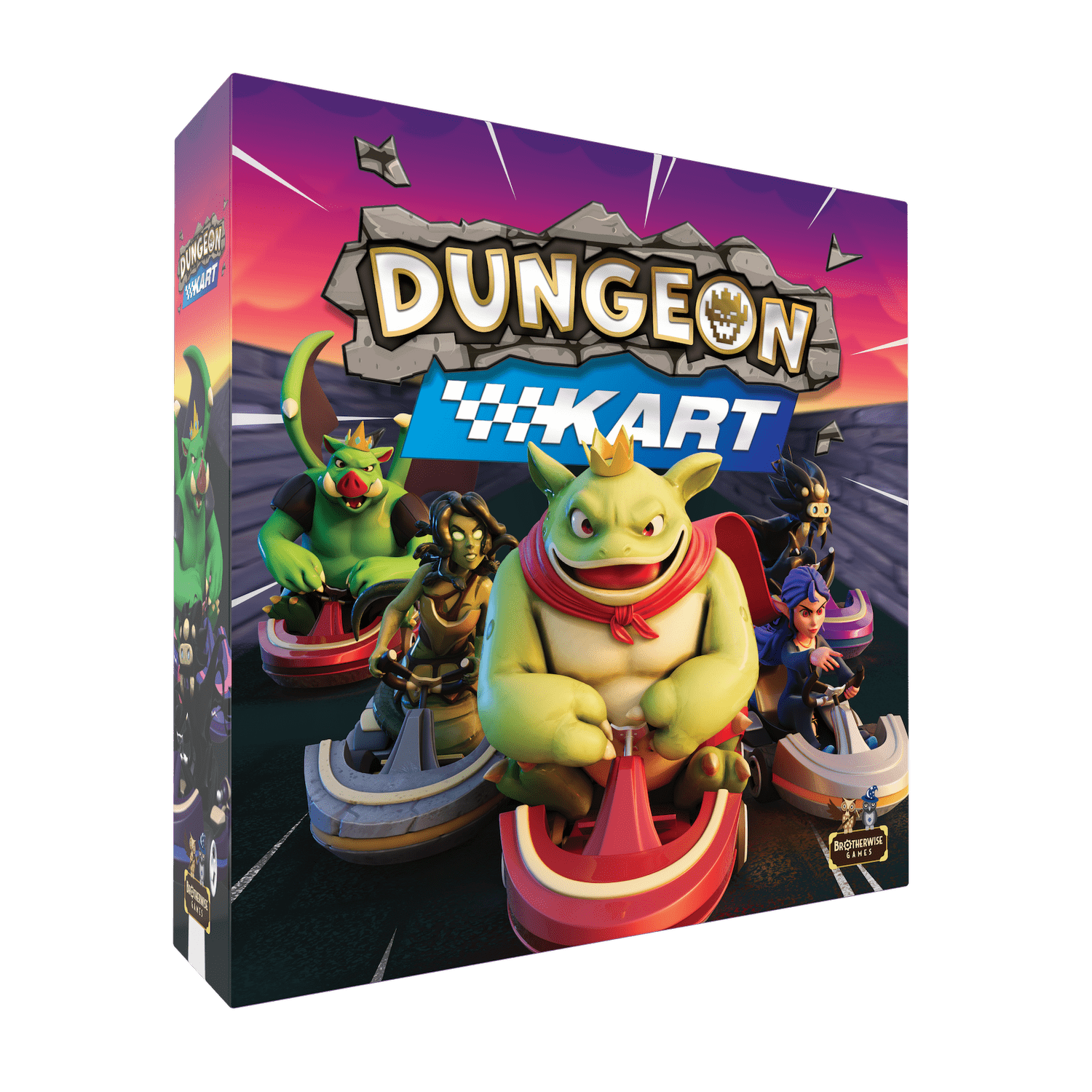 Race against your evil rivals in this fast paced board game for 2-8 players, featuring the villainous bosses of Boss Monster! Dungeon Kart transforms the multiplayer mayhem of kart racing into a turn-based tactical tabletop experience. Play as one of the baddest Bosses around while using Spells to disrupt other racers, grab coins, and power yourself up! With a lot of skill and a little luck, you can cross the finish line first and show your opponents who’s Boss!