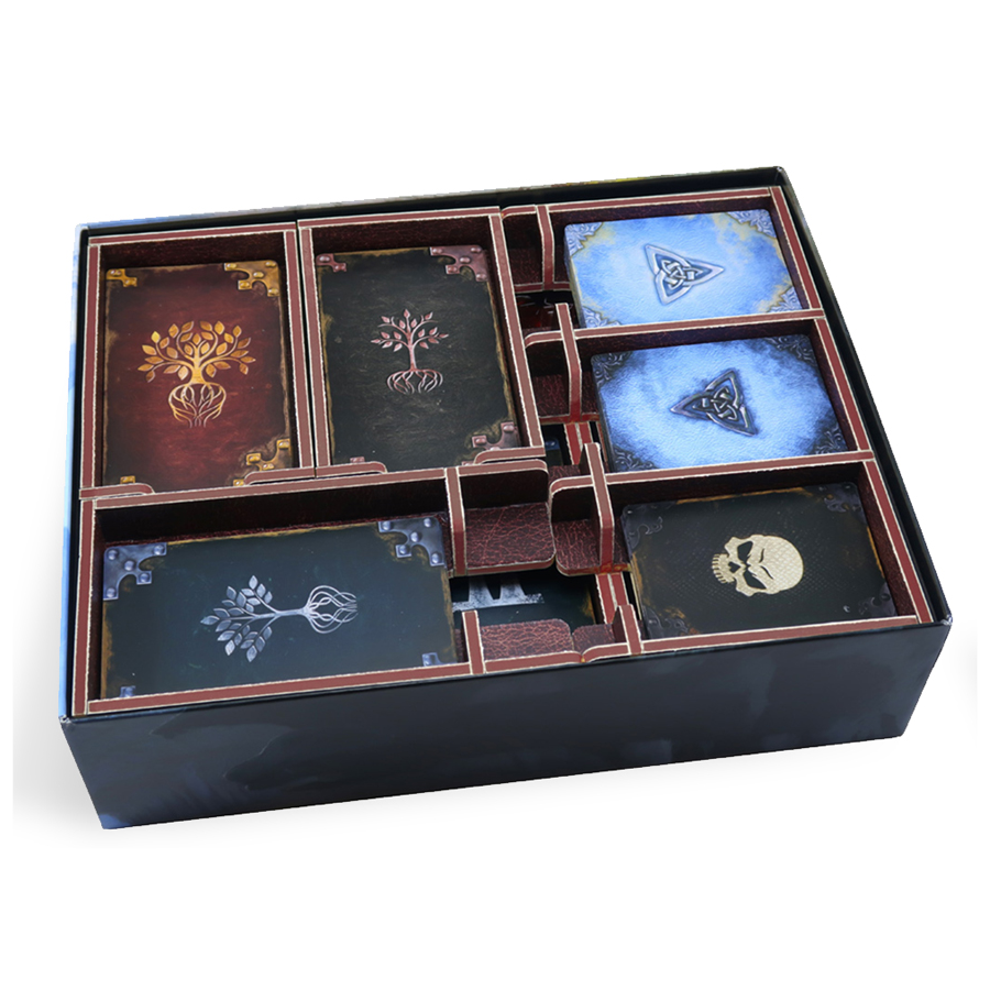 This beautiful foam core insert fits in any Call to Adventure “big box” expansion and holds sleeved (up to 2 games worth) and unsleeved cards (up to one game’s worth). Each tray is labelled with the symbol of its contents. Assembly required.